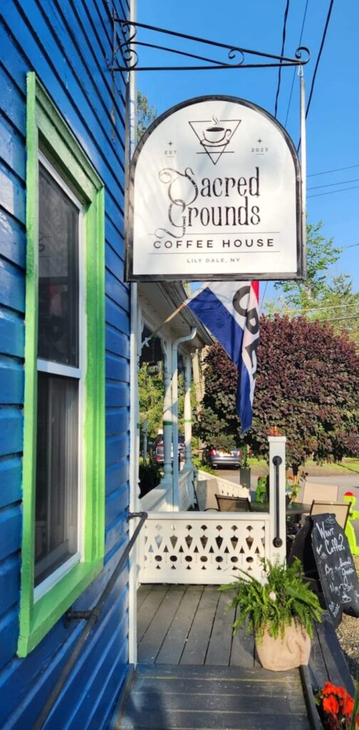 The seasonal coffee shop, Sacred Grounds Coffeehouse, located at 6 Cleveland Ave. in Lily Dale, is intended to offer a safe space for coffee, tea, and food – but Stacy and Michele also hope to offer a space where people can come together and connect.