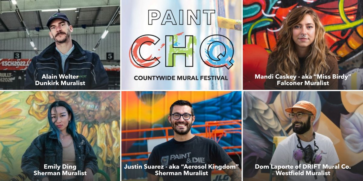 CHAUTAUQUA COUNTY, N.Y. – The Chautauqua County Partnership for Economic Growth (CCPEG) and Chautauqua County Department of Planning and Development (CCDPD) are pleased to announce that five world-renowned muralists have been selected to paint four large-scale, public murals during the inaugural Paint CHQ mural festival, slated for the second week of September 2025.